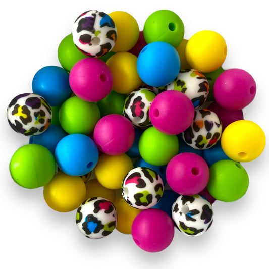 12mm "Colorful Leopard" 50 Count Silicone Bead Pack
