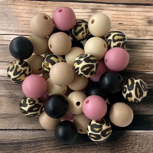 12mm "Cheetah" 50 Count Silicone Bead Pack