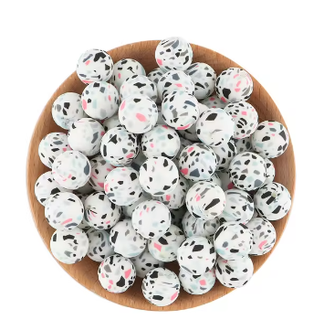 T88- 15mm Eucalyptus Printed Silicone Beads