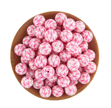 A-6037- “Pink Breast Cancer Ribbon” Silicone Beads