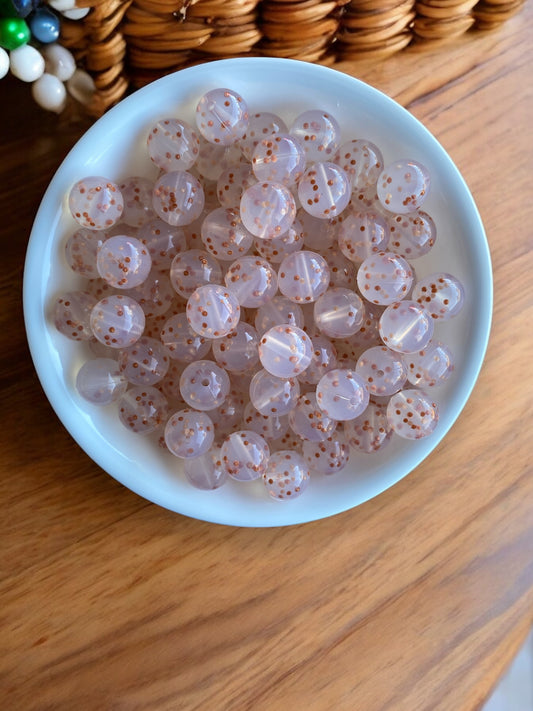 T61 - 15mm "Rose Gold Confetti" Silicone Beads