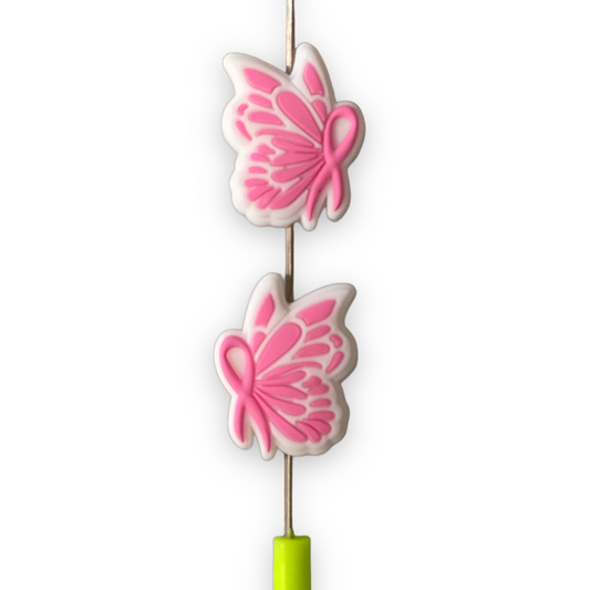 e605 - Pink Ribbon Silicone Focal Bead (1 Count)