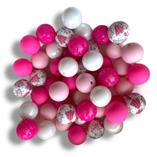 CK- 200- 🎀 15mm “Pinkmas” 50 Count Mixed Pack Silicone Beads❄️