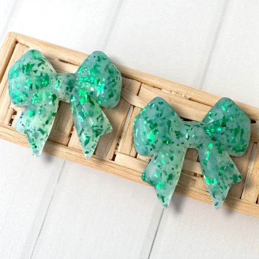 X71- "Green Glitter Bow" Silicone Focal Bead