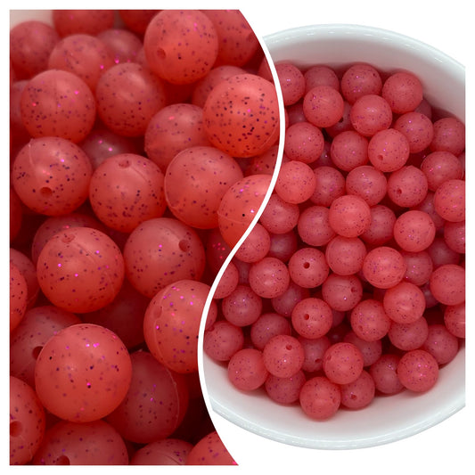 T234- 15mm "Red Glitter" Silicone Beads