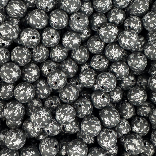 T65- 15mm Black Snowflake Silicone Focal Bead