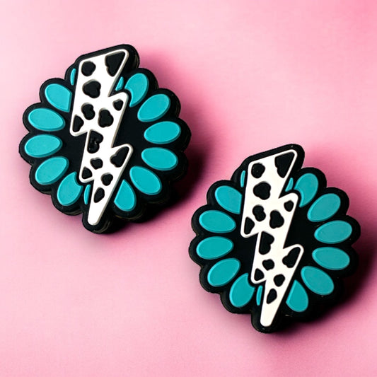 X399 - “Turquoise Cow Bolt" Silicone Focal Bead (1 Count)