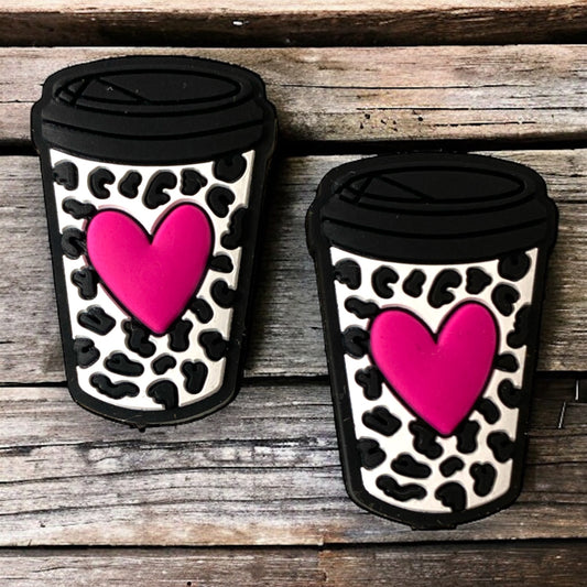X172 - "Pink Heart Coffee" Silicone (1 Count) Focal Bead