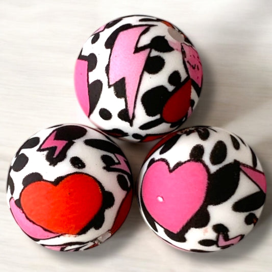 #803 - 15mm "Valentine's Cow Print" Silicone Beads
