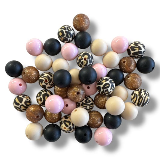 CK-14 - 🖤 Leopard Luxe– Silicone 15mm Bead Lot (50 Count) 🖤