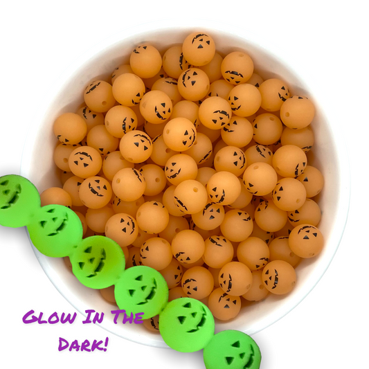 A-6040- GLOW- “15mm Jack O Lantern” Custom Silicone Beads