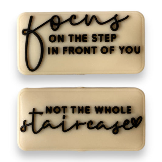 e562 - "Focus On The Step / Not The Whole Staircase " Two Sided Exclusive" Focal (1 Count) Bead Silicone
