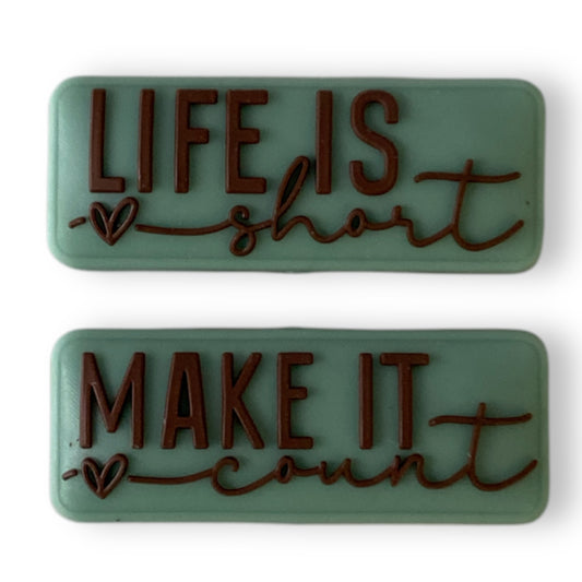 e518 - "Life Is Short / Make It Count " Two Sided Exclusive" Focal (1 Count) Bead Silicone