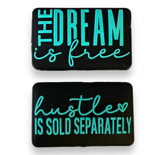 e564 - "The Dream Is Free / The Hustle Is Sold Separately" "Two Sided Exclusive" Focal (1 Count) Bead Silicone