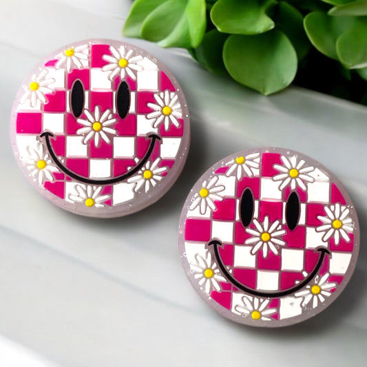 X72 - "Pink- Checkered Happy" Silicone Focal Bead (1 Count)