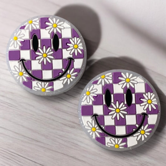 X69 - "Purple- Checkered Happy" Silicone Focal Bead (1 Count)