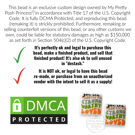 e527- "You Are Beautiful, Strong, Worthy, Loved" Exclusive Focal (1 Count) Bead Silicone