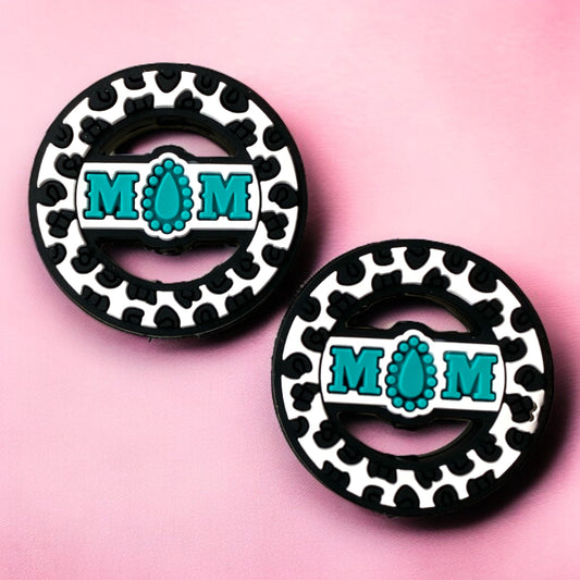 e681- “Mom- Western Turquoise" Focal (1 Count) Bead Silicone