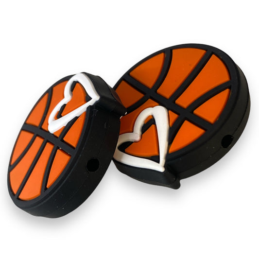 X225 - "Basketball Heart" Focal (1 Count) Bead Silicone