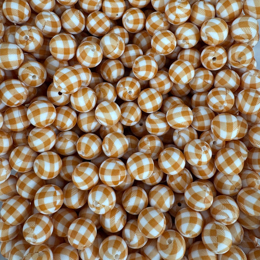 #738 - 15mm "Mustard Plaid" Pattern Silicone Beads