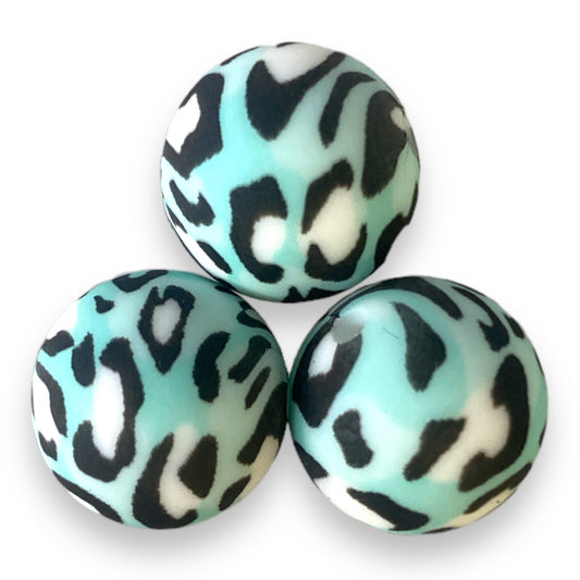 A54 - 15mm "Aqua Leopard Print" (10 Count) Silicone Beads, Craft Supplies
