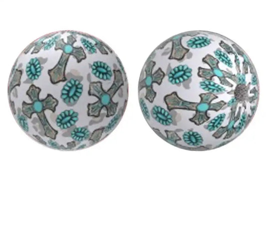 A55 - 15mm "Turquoise Cross Print" (10 Count) Silicone Beads, Craft Supplies