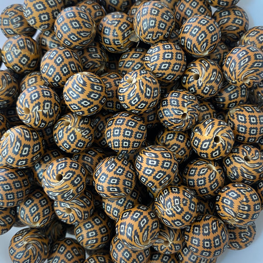 A56 - 15mm "Koe Western Print" (10 Count) Silicone Beads, Craft Supplies