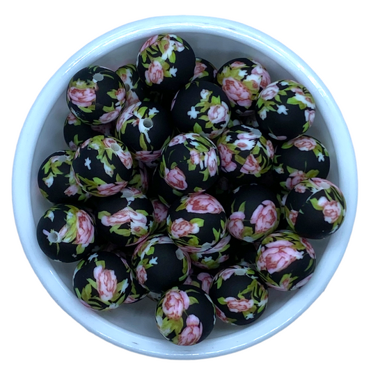 #747 - 15mm “Black Floral” Silicone Beads