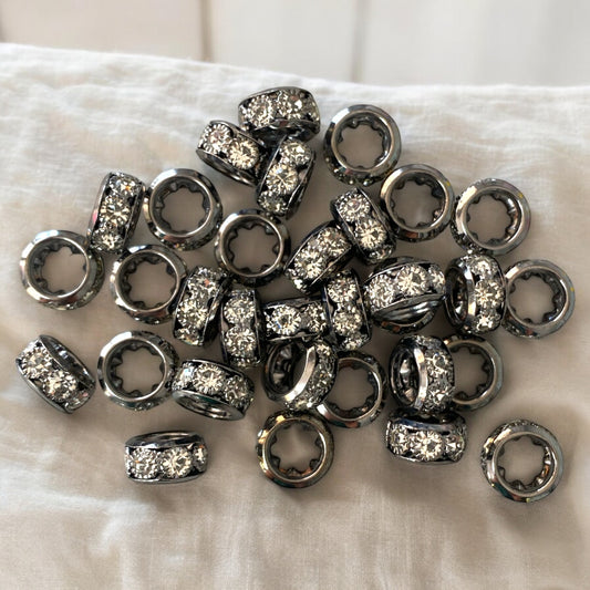 P103 -12mm Wide Hole "Gunmetal" Rhinestone Spacers (10 Count)