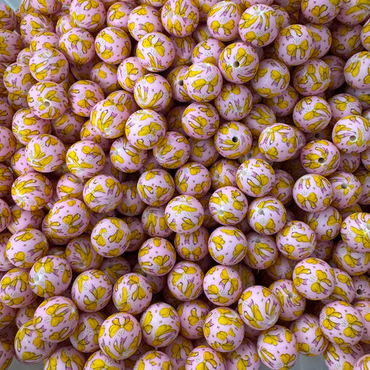 T415- 15mm "Pink Pencil Bow" Pattern Silicone Beads