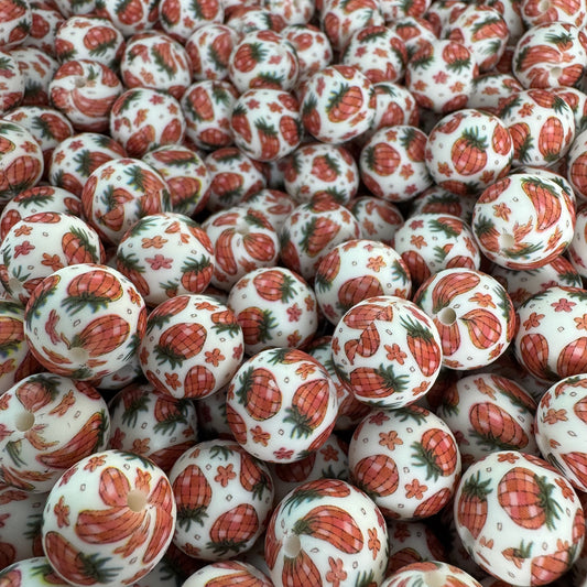 #702 - 15mm "Pumpkin Patch" Pattern Silicone Beads