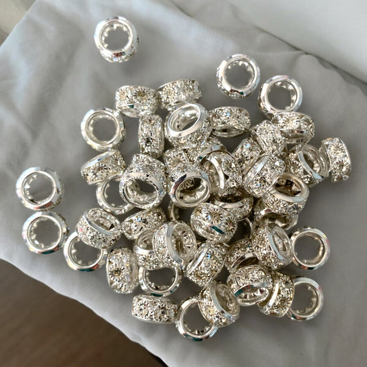 P102 - 12mm Wide Hole Silver Rhinestone Spacers (10 Count)