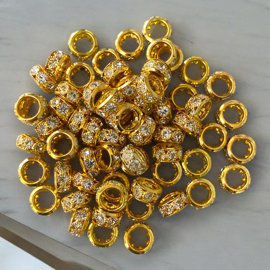 P78 - 8mm Wide Hole "Gold" Rhinestone Spacers (10 Count)