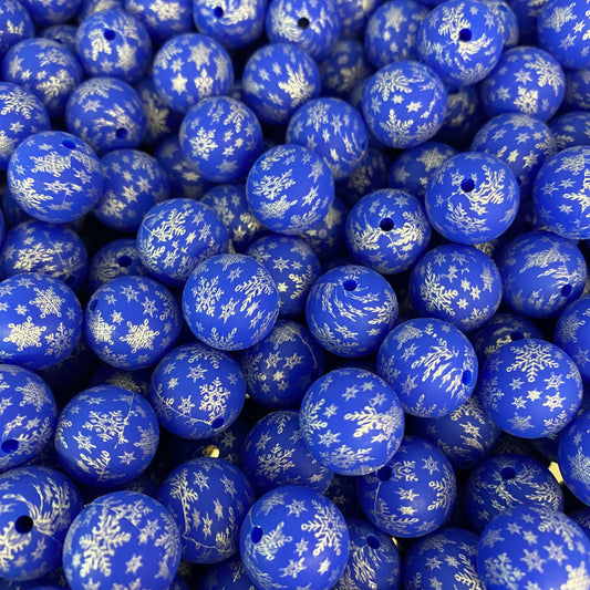 T73- 15mm “Light Blue Snowflakes” Silicone Beads