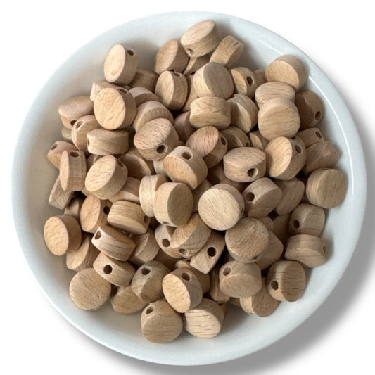 T36- 15mm x 7mm Flat Beechwood Coin Bead