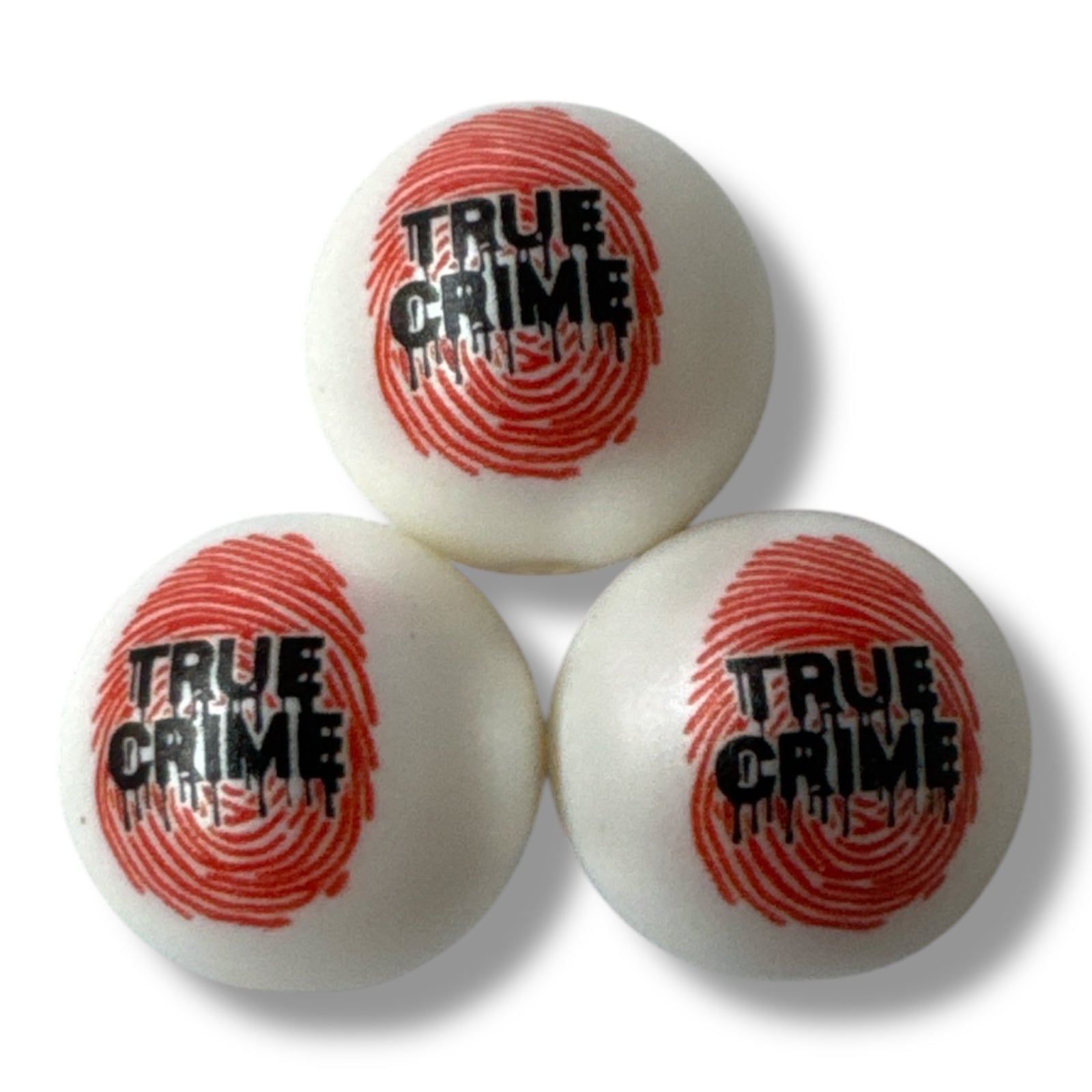 These 20mm "True Crime" printed acrylic pearl beads feature a matte white finish with precise, vivid printing. Ideal for jewelry makers and craft professionals, each bead offers a unique blend of durability and distinctive style, perfect for creating statement pieces with a polished, contemporary look.