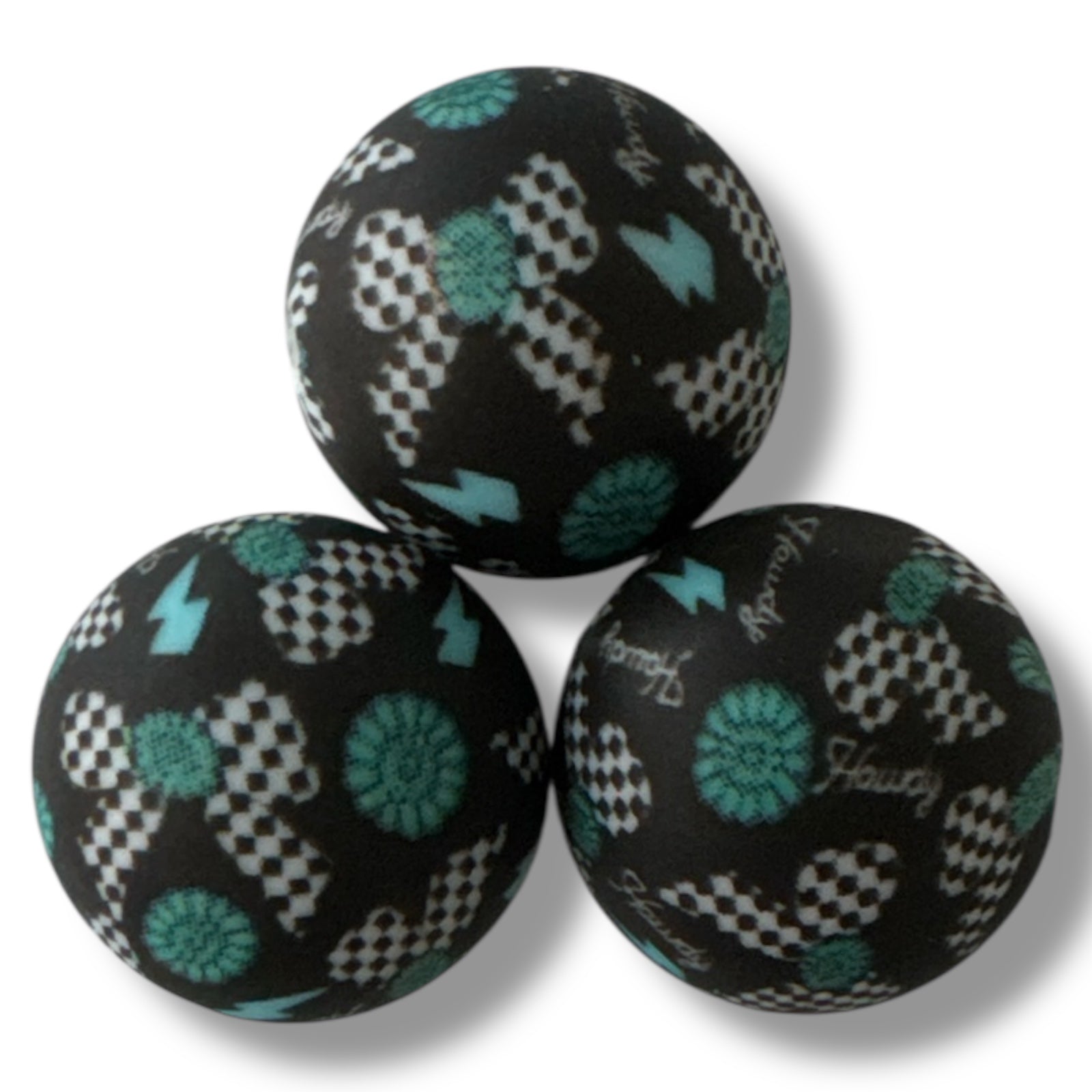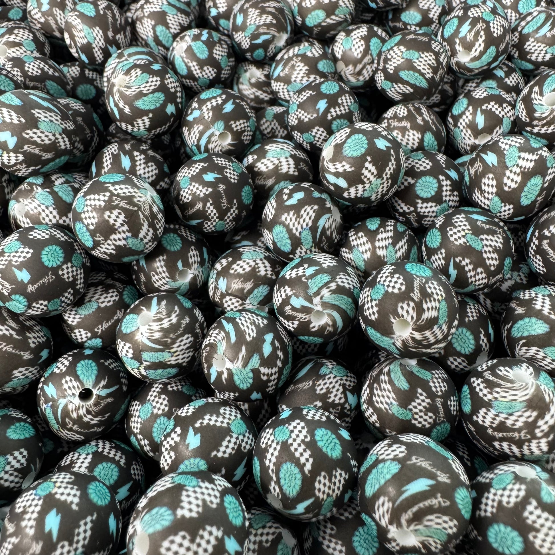 #707- 15mm "Turquoise Disco" Pattern Silicone Beads