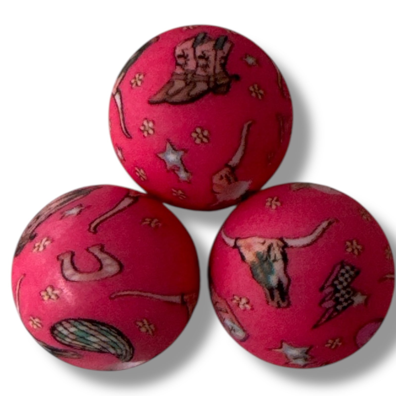 #719- 15mm "Pink Rodeo" Pattern Silicone Beads