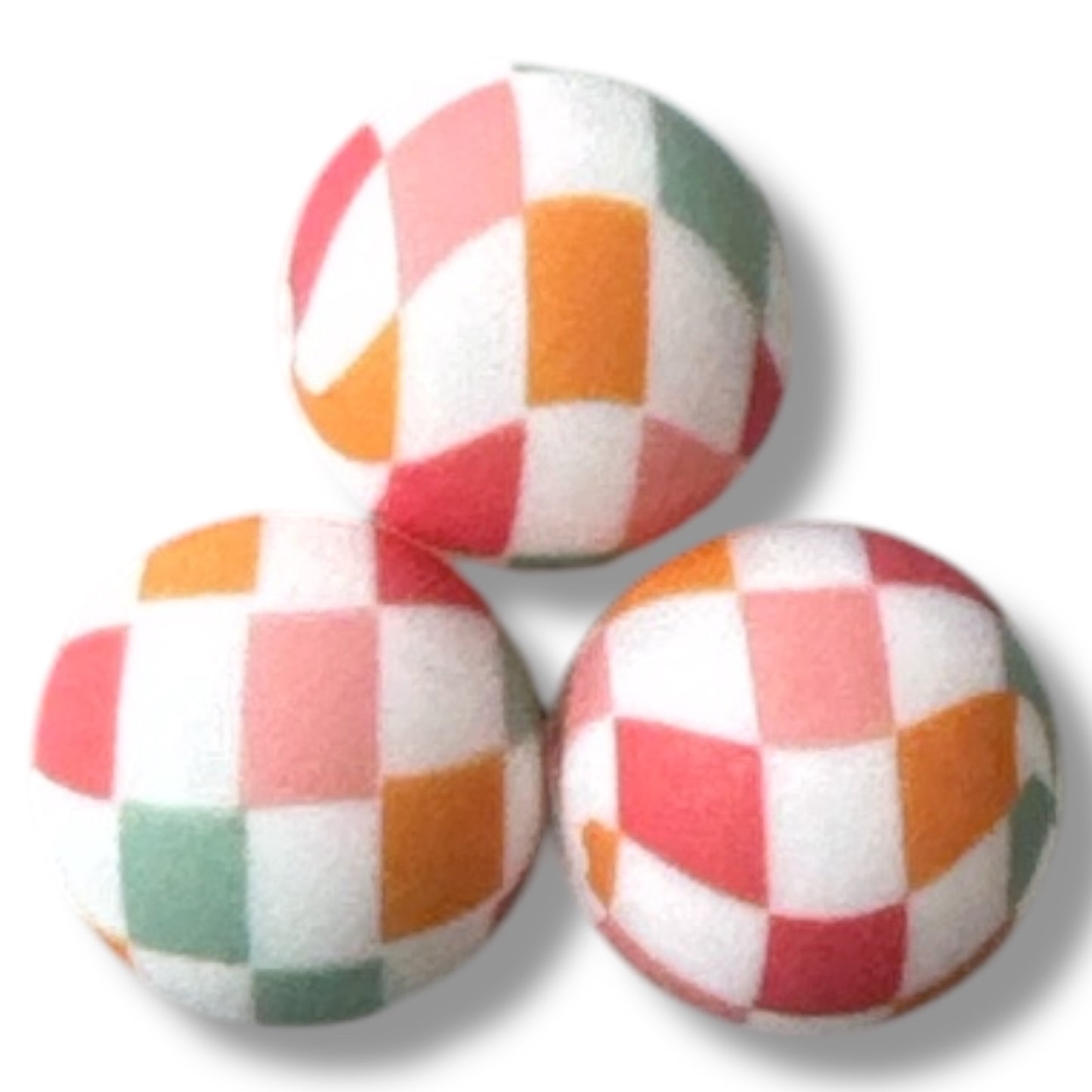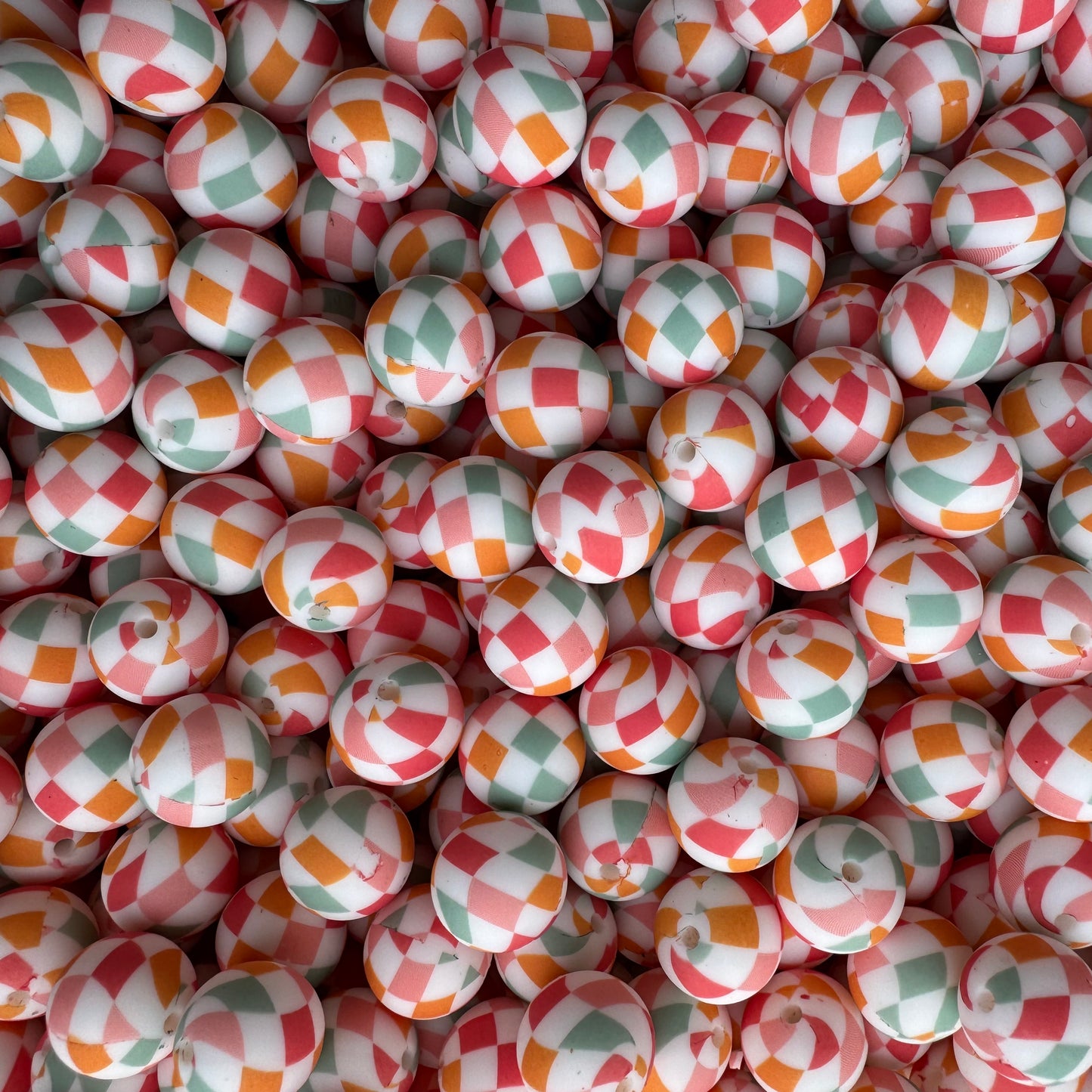#783 - 15mm “Boho Checkered” Printed Silicone Beads