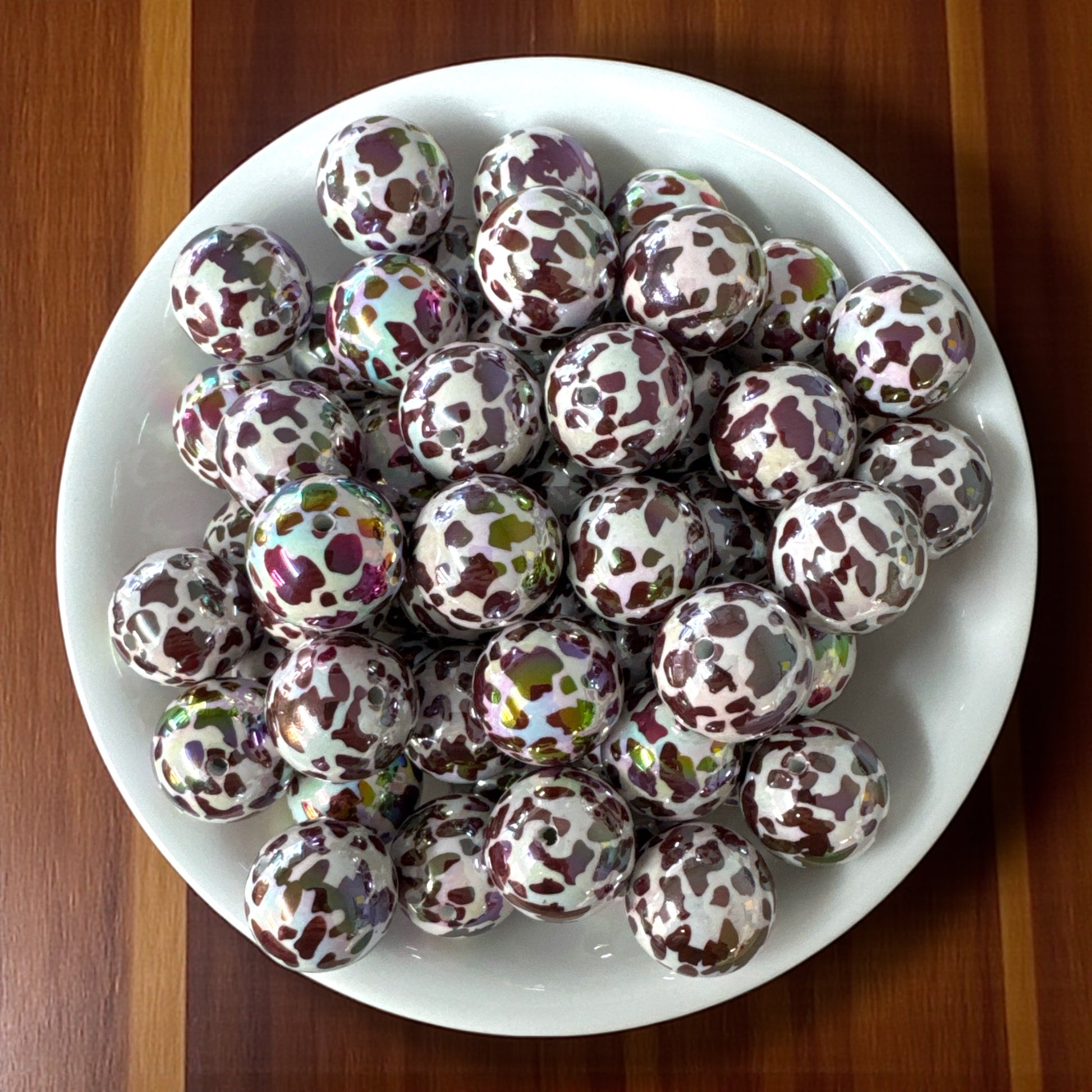 #946- 20mm Brown & White Opal Cow Acrylic Beads (1 Count)