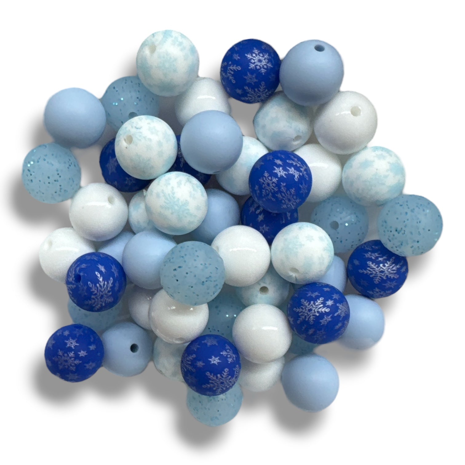 CK- 232- ❄️ "Winter Snowflake" 15mm 50 Count Silicone Bead Mix❄️