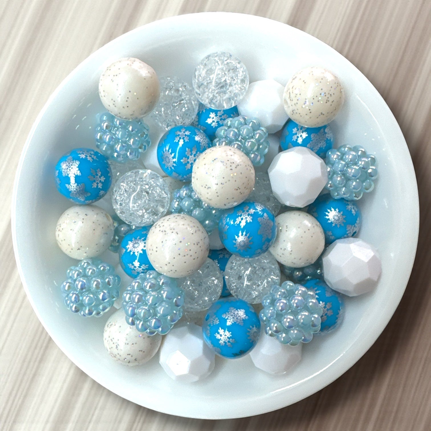 • 50 premium 20mm acrylic beads in a coordinating mix of winter hues: