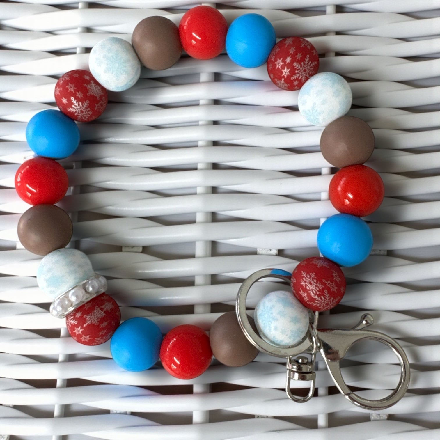 20 15mm high-quality silicone beads in a charming red, white, sky blue, and brown โRudolphโ theme