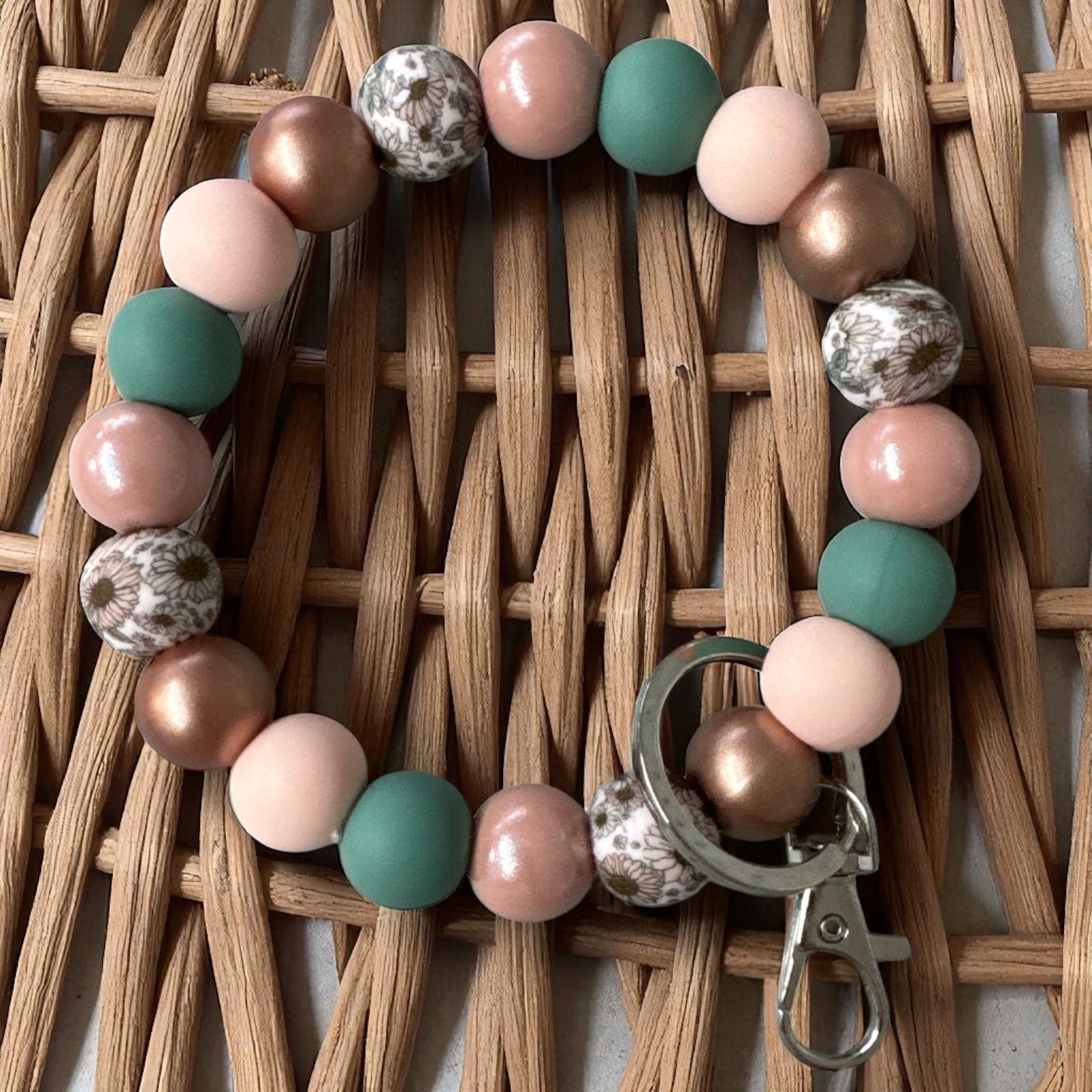 Create your own stylish and functional wristlet with this beautifully curated DIY Silicone Wristlet Kit. Featuring a warm, nature-inspired color palette of peachy corals, soft earthy greens, and our signature floral print beads, this kit is perfect for makers of all levels.