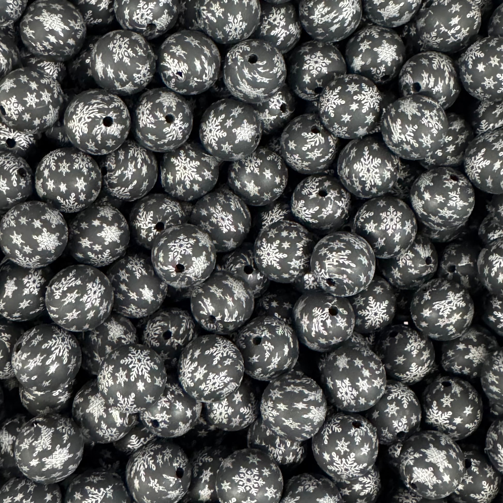 T65- 15mm Black Snowflake Silicone Focal Bead