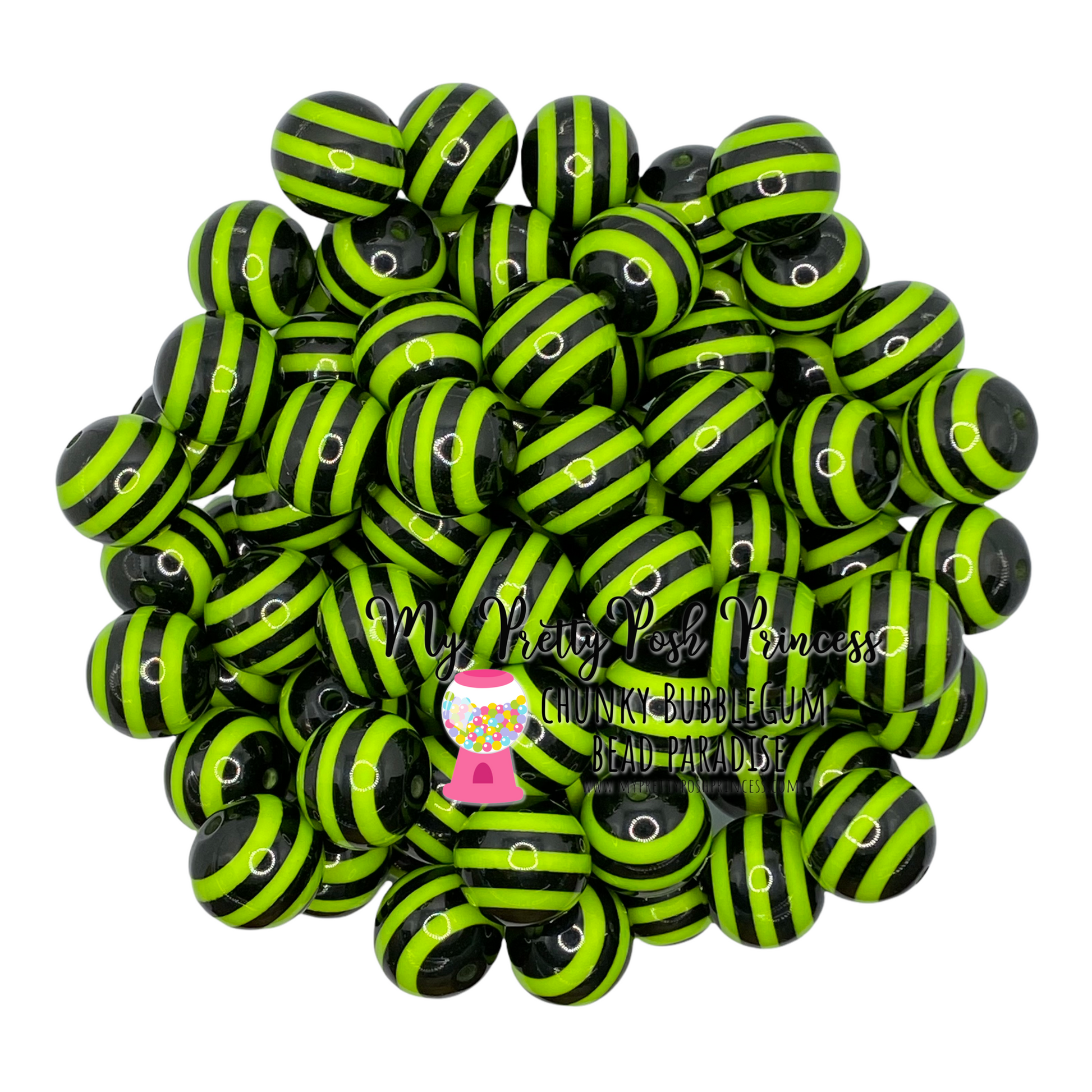 stp 26- 12mm Black & Lime Stripe Acrylic Beads (20 Count)