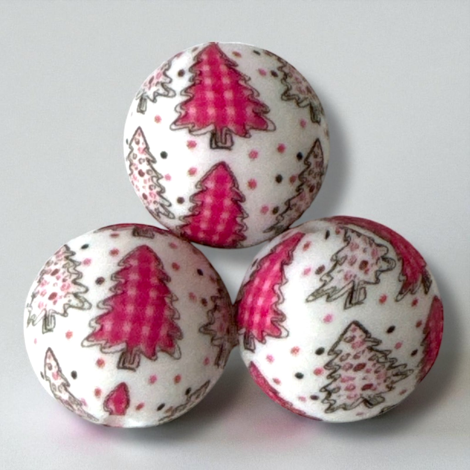 T56- 15mm “Pink Christmas Tree” Silicone Beads
