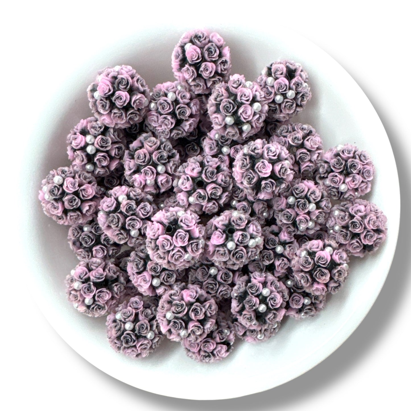 W406 - 20mm "Deep Purple With Pearls Daisy" Bead (1 Count)