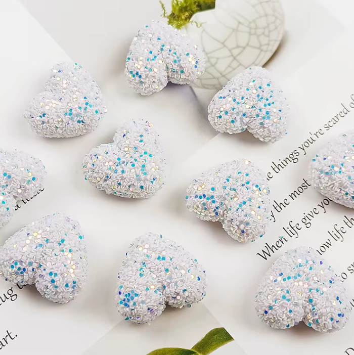 W407- White 22 x 25mm Glitter Heart Acrylic Bead (1 Count)