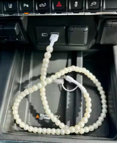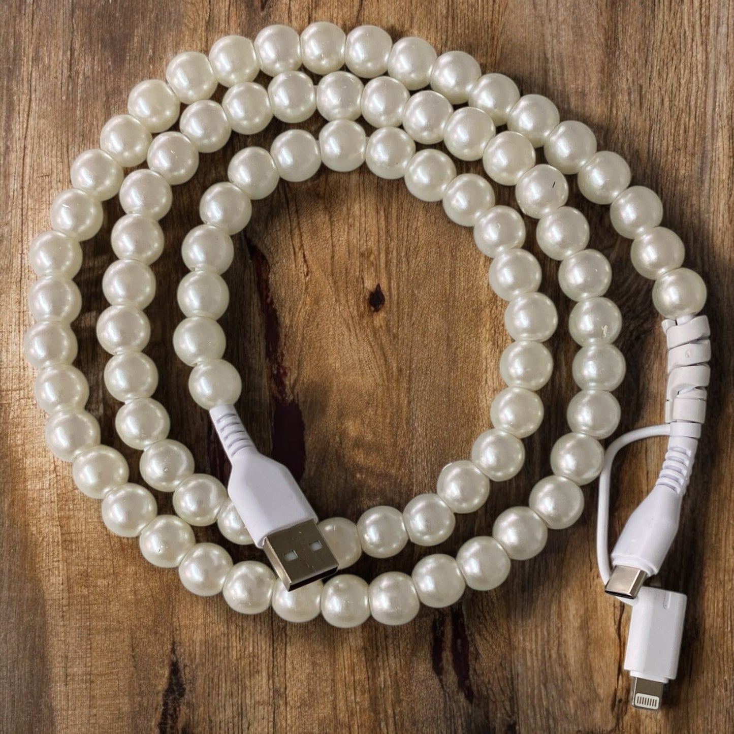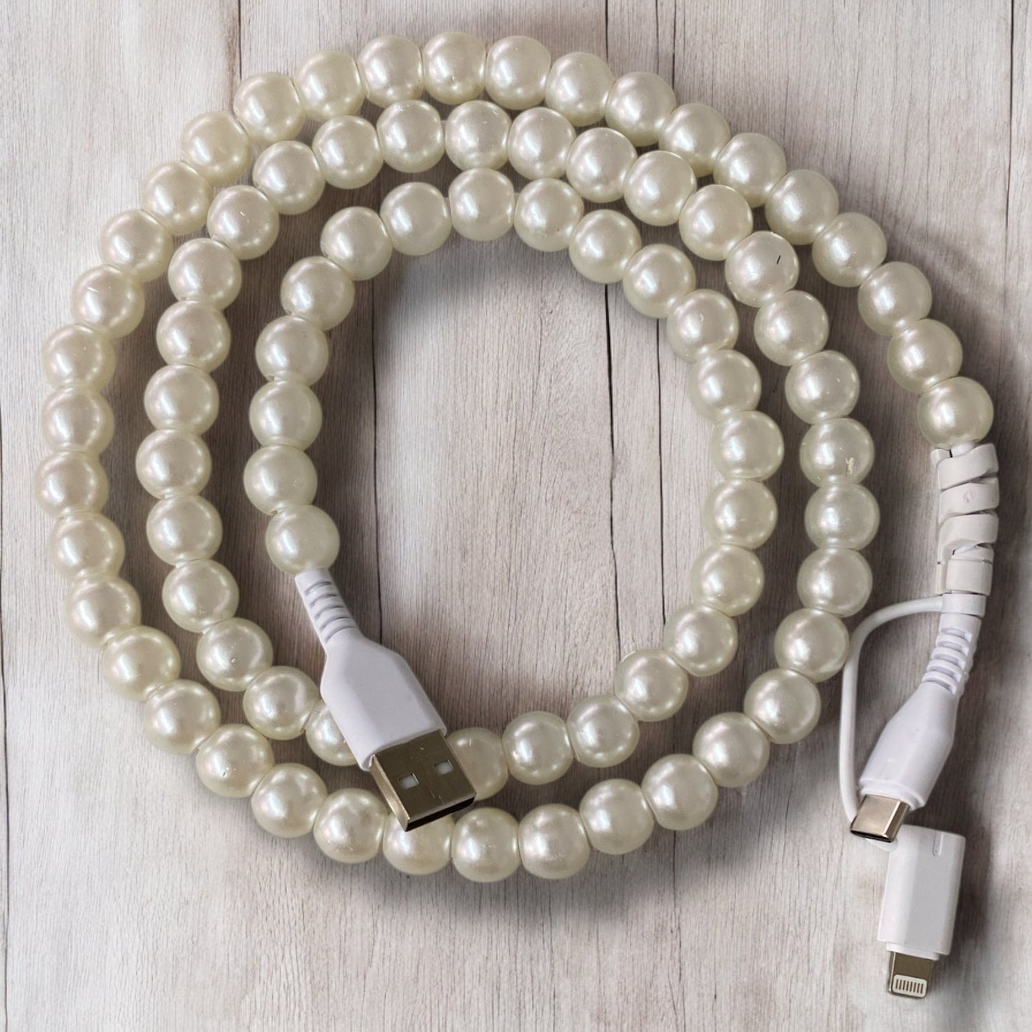 PHONE 7- White Pearl Beaded "2 in 1 Connector" 39.37" Phone Charger